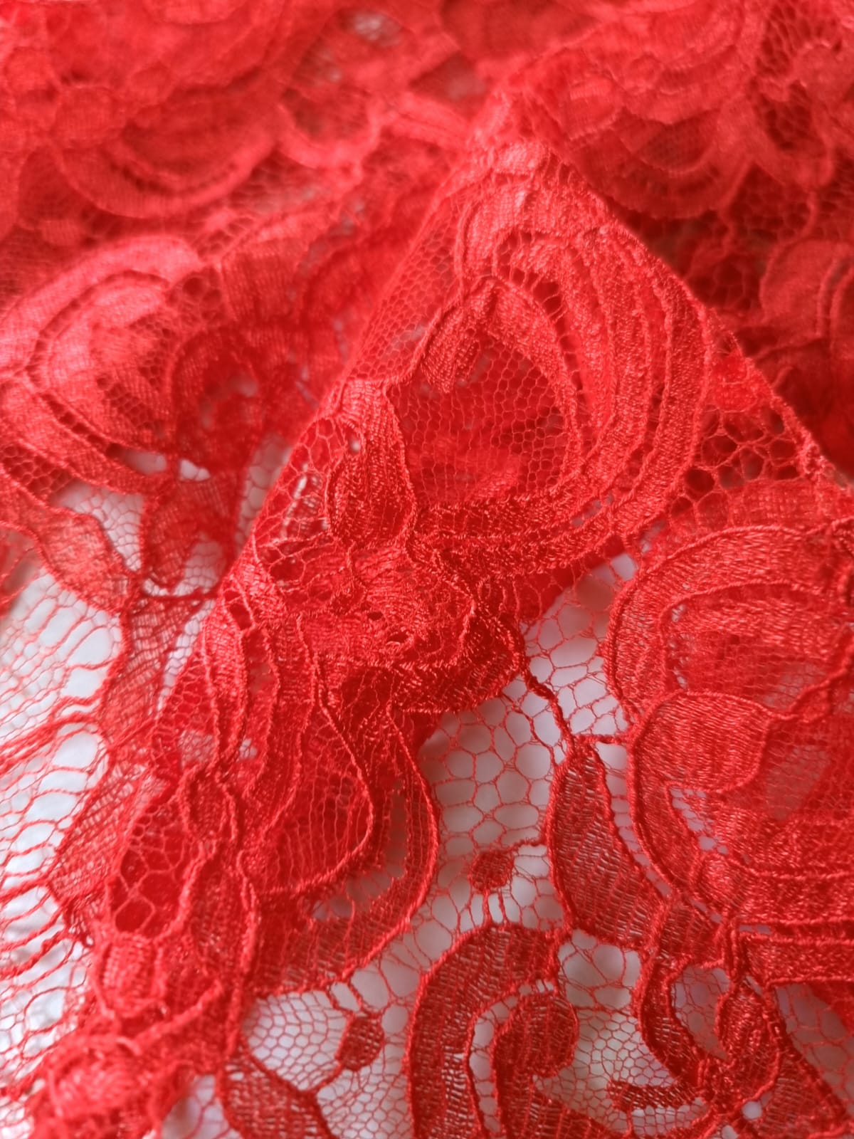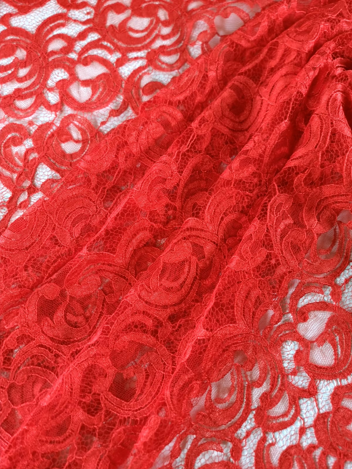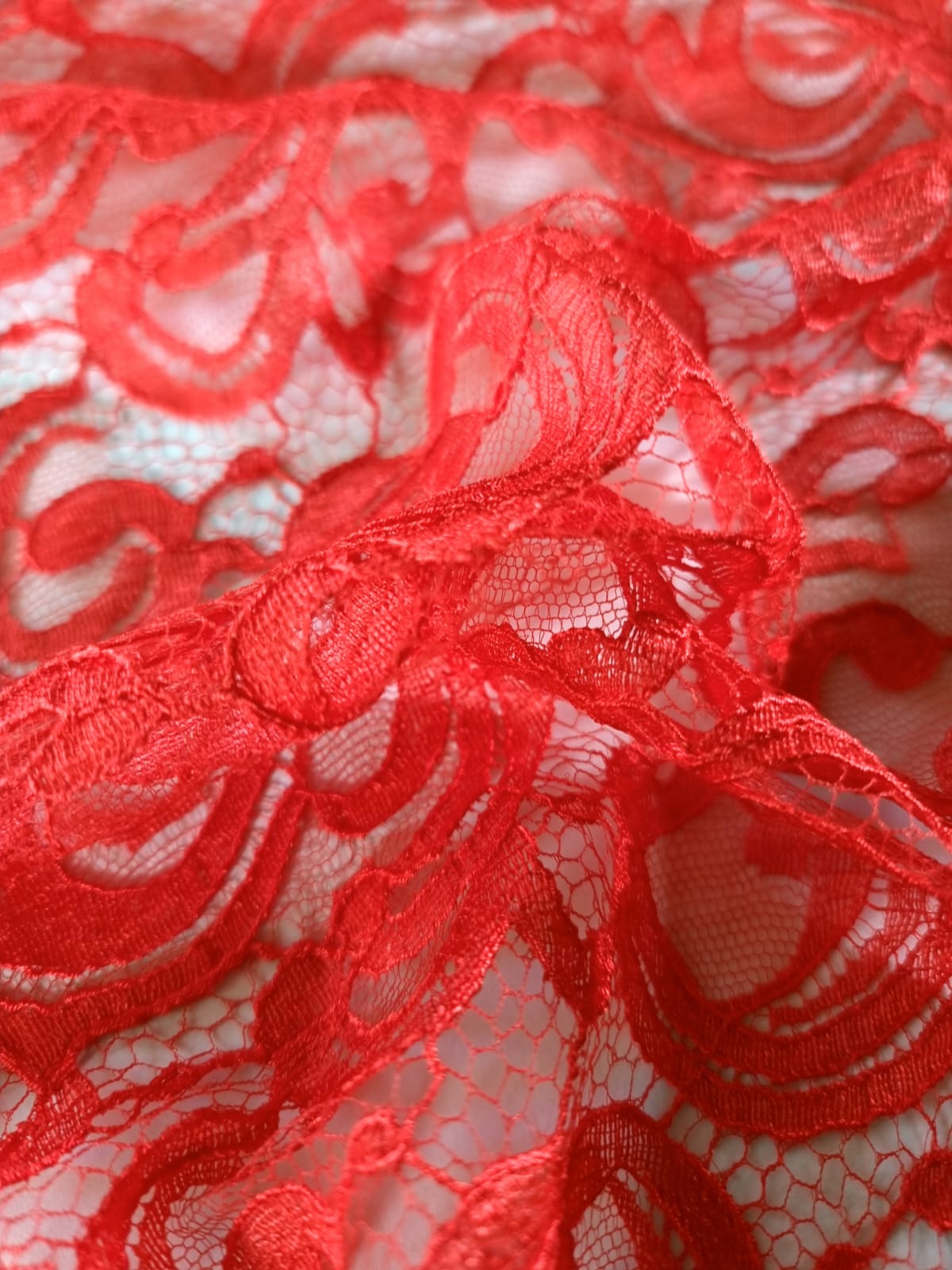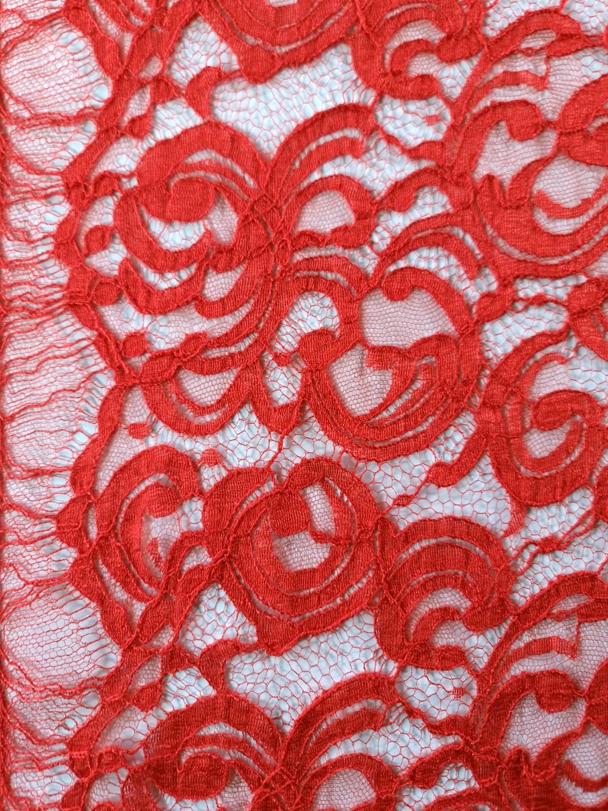 Tesatura premium – Dantela ajurată din fibre naturale, design floral, Rosu