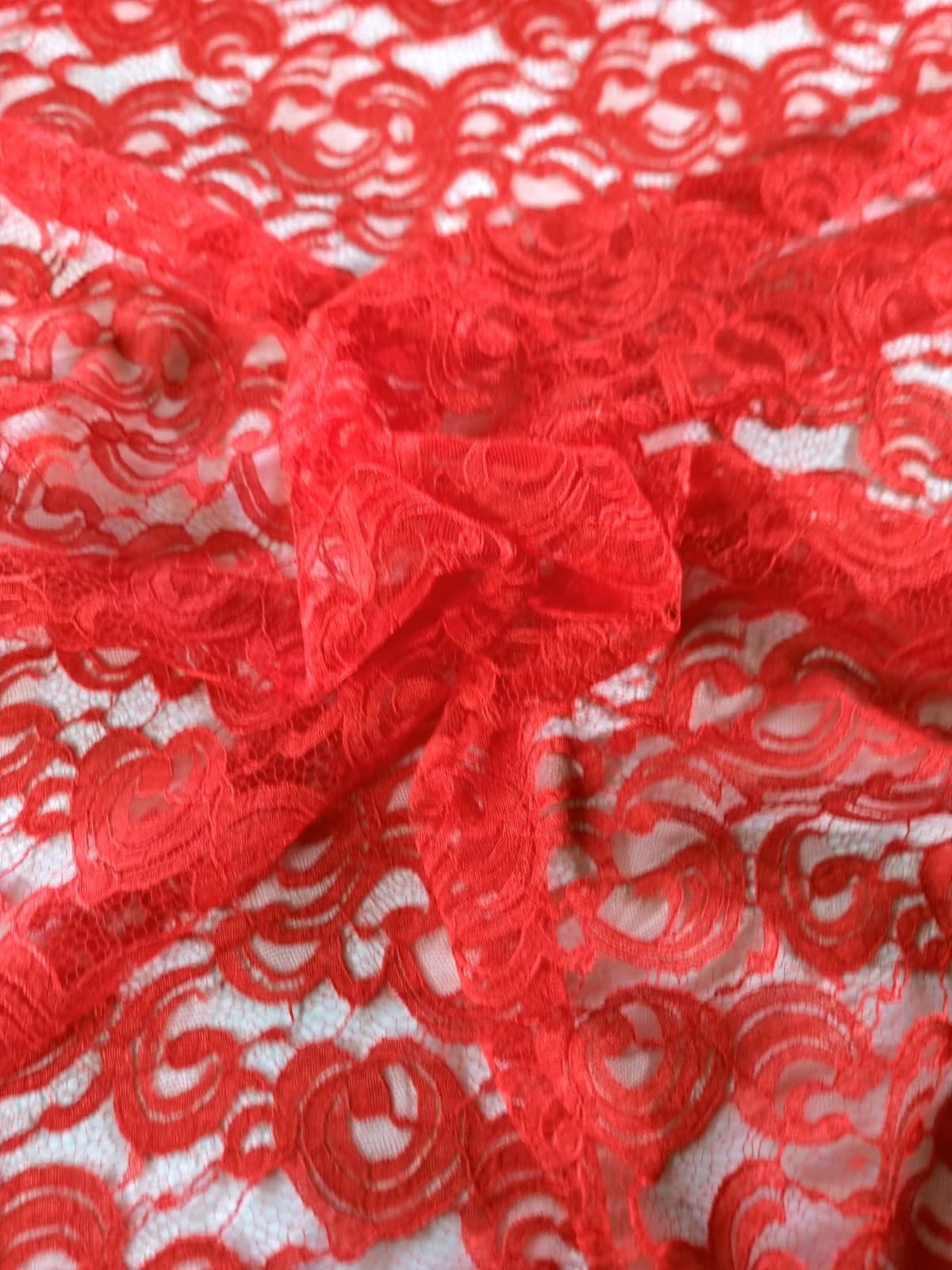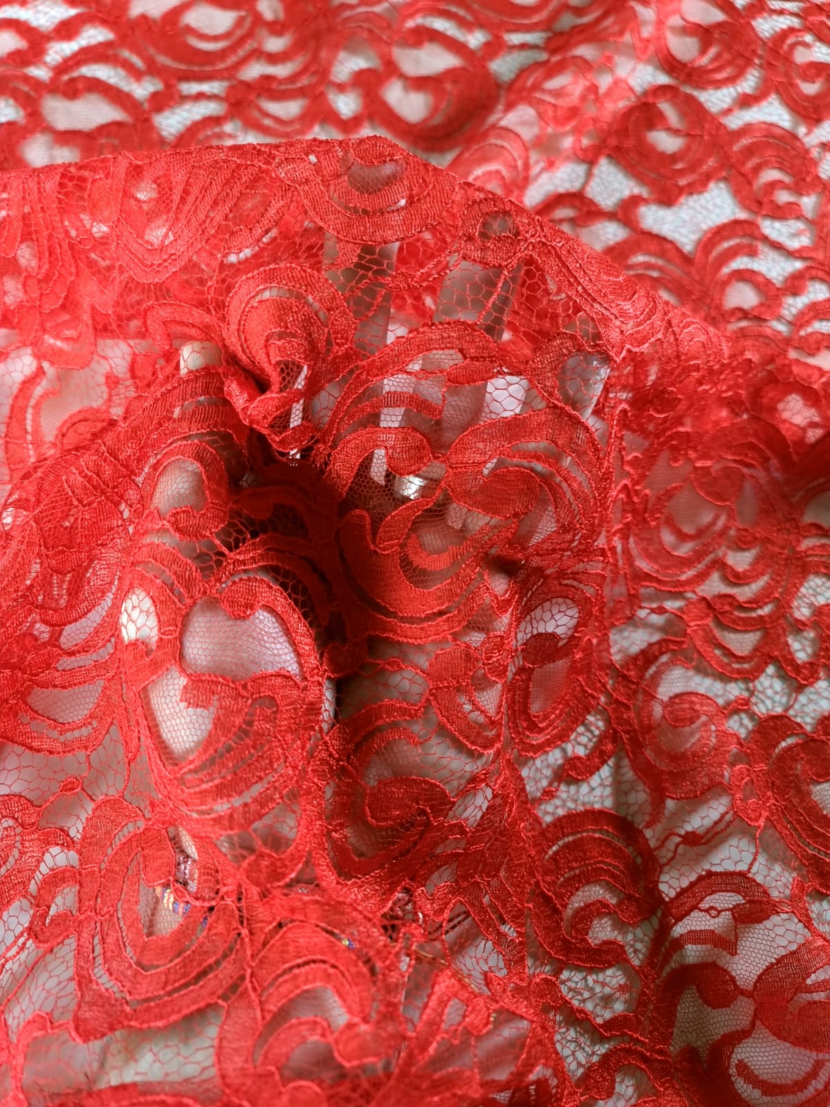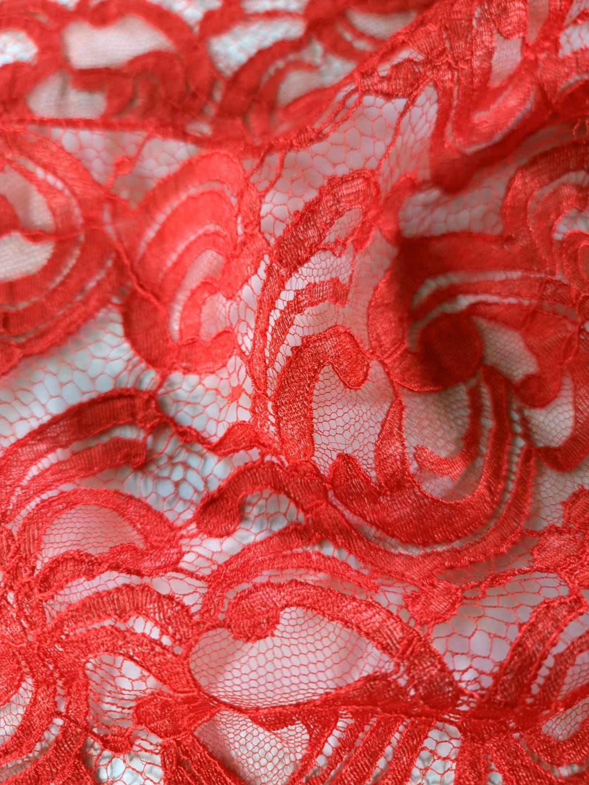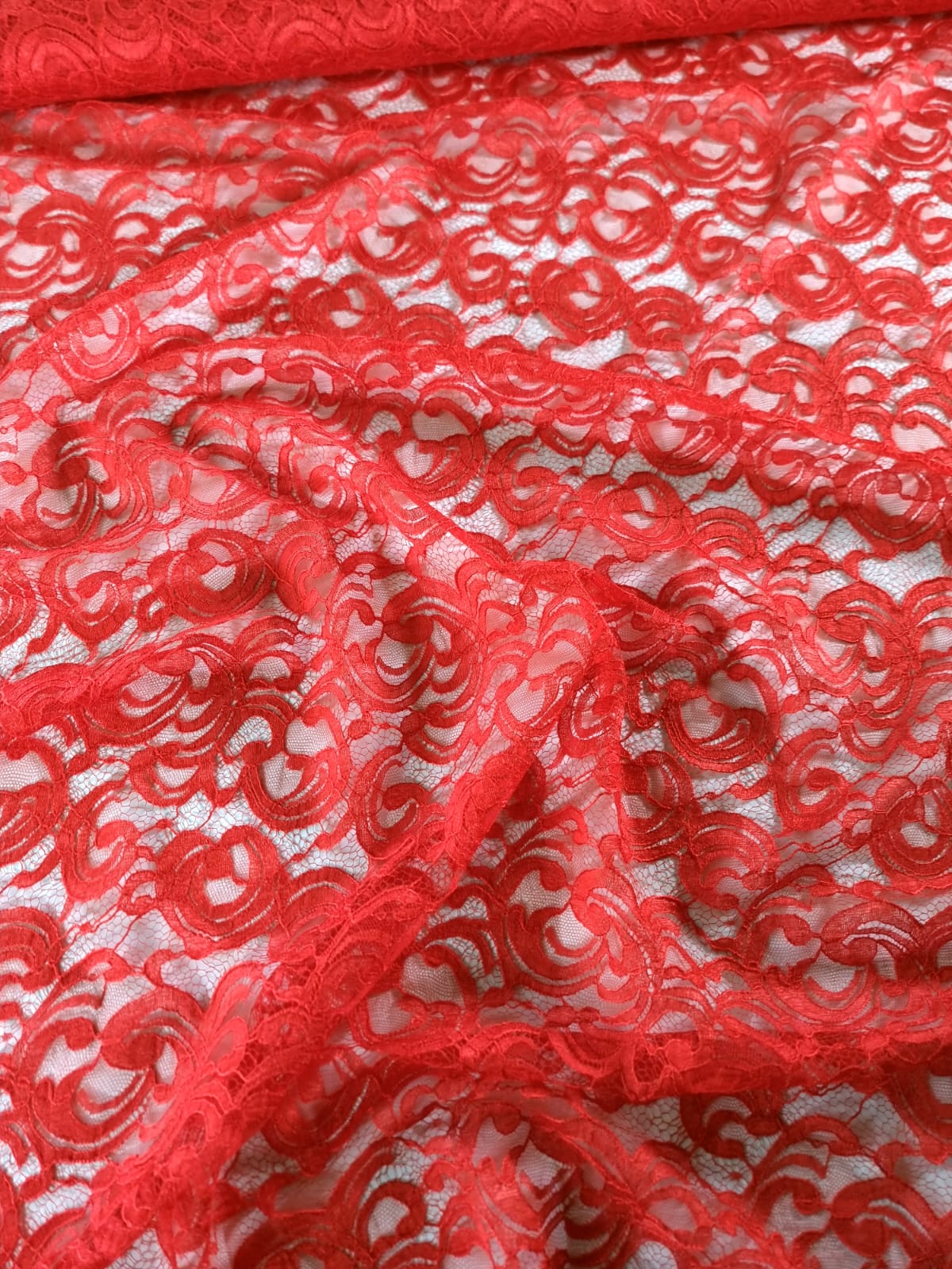 Tesatura premium – Dantela ajurată din fibre naturale, design floral, Rosu