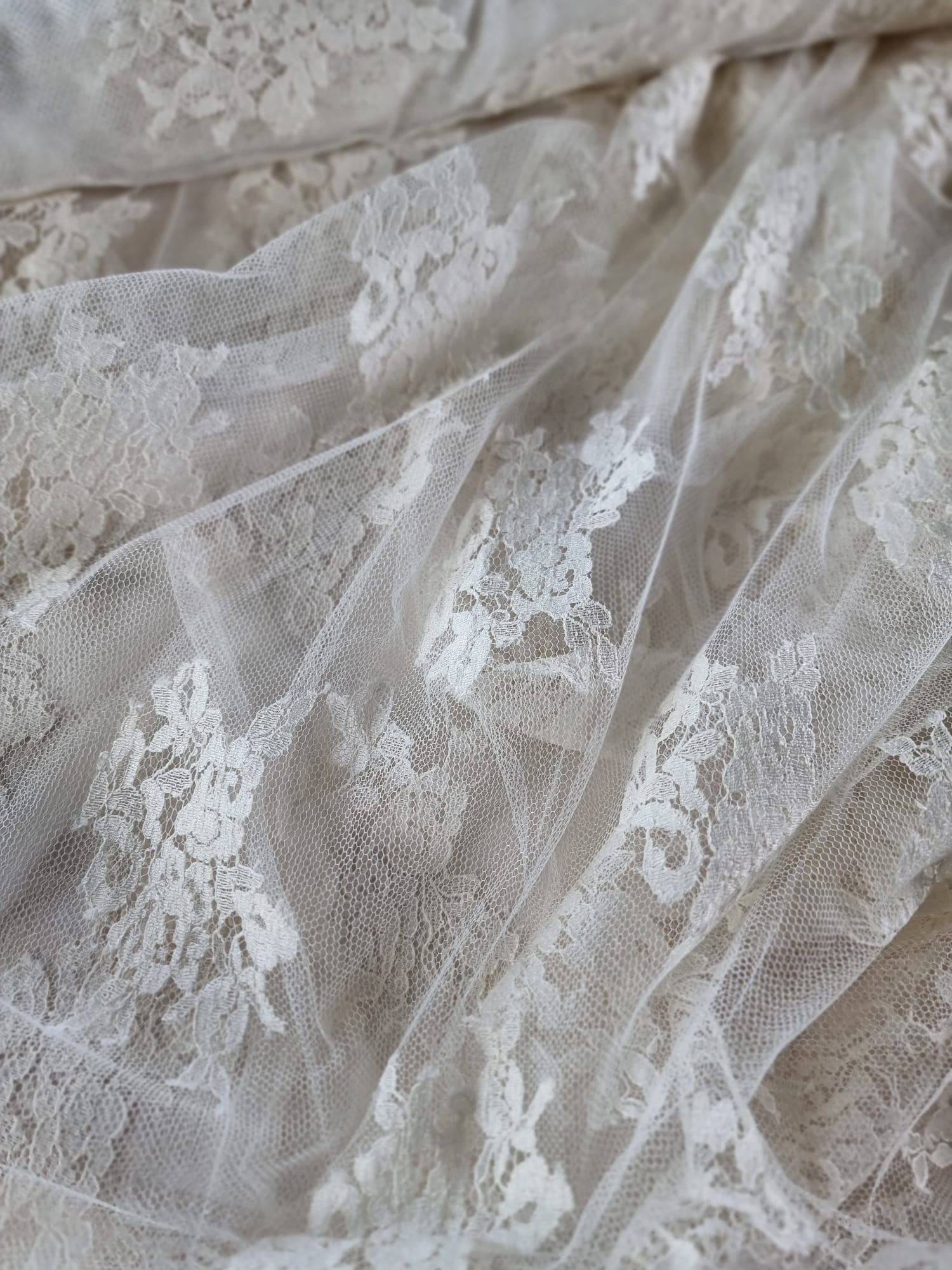 Un simbol al luxului și al grației, dantela Chantilly este recunoscută pentru finețea sa extraordinară și modelele florale romantice. Originară din Franța, această dantelă diafană se remarcă prin detalii delicate și un joc subtil de transparență, oferind oricărei creații un aer nobil și sofisticat. Ideală pentru rochii de mireasă și ținute de seară, Chantilly este definiția pură a eleganței couture.