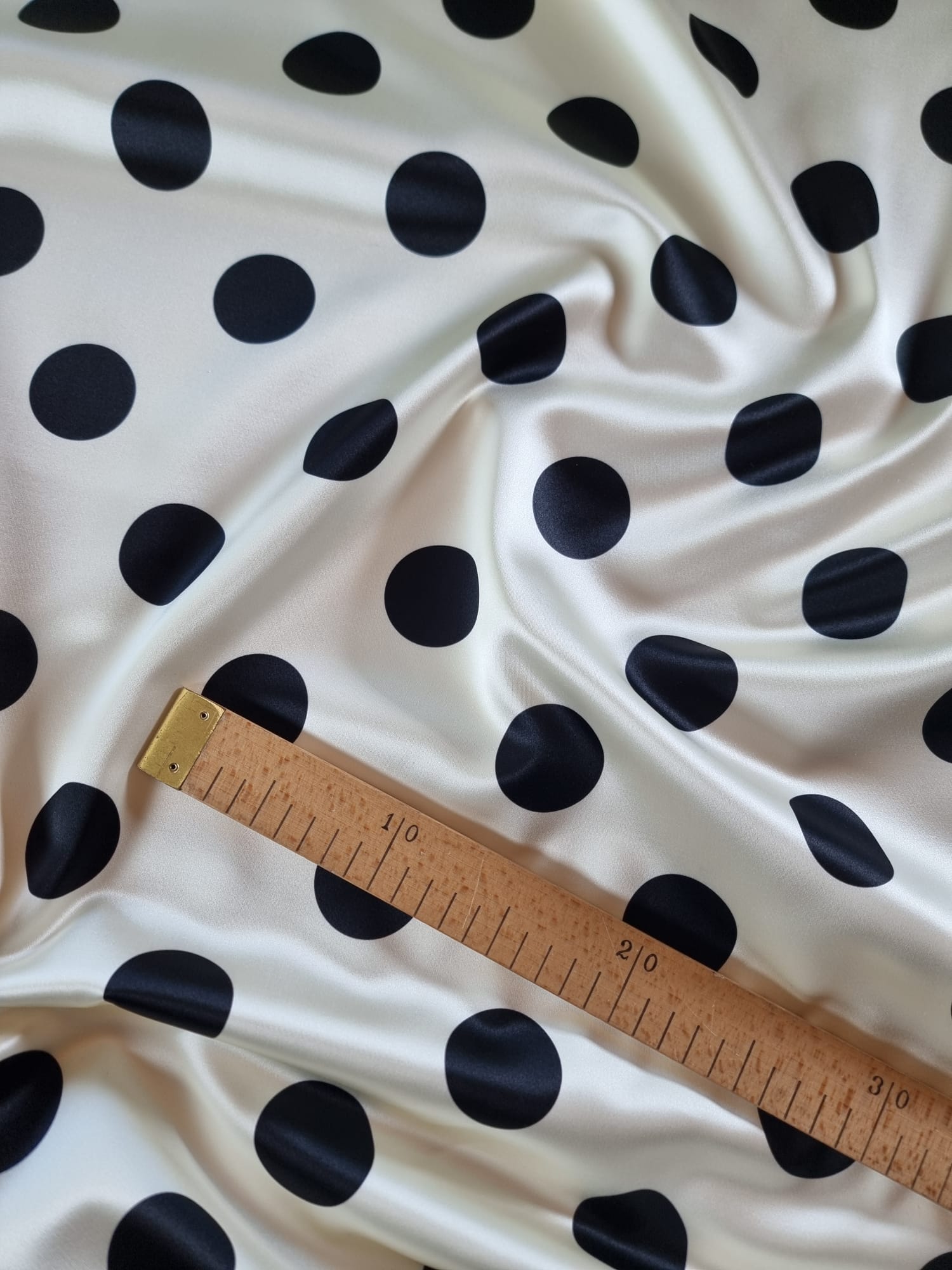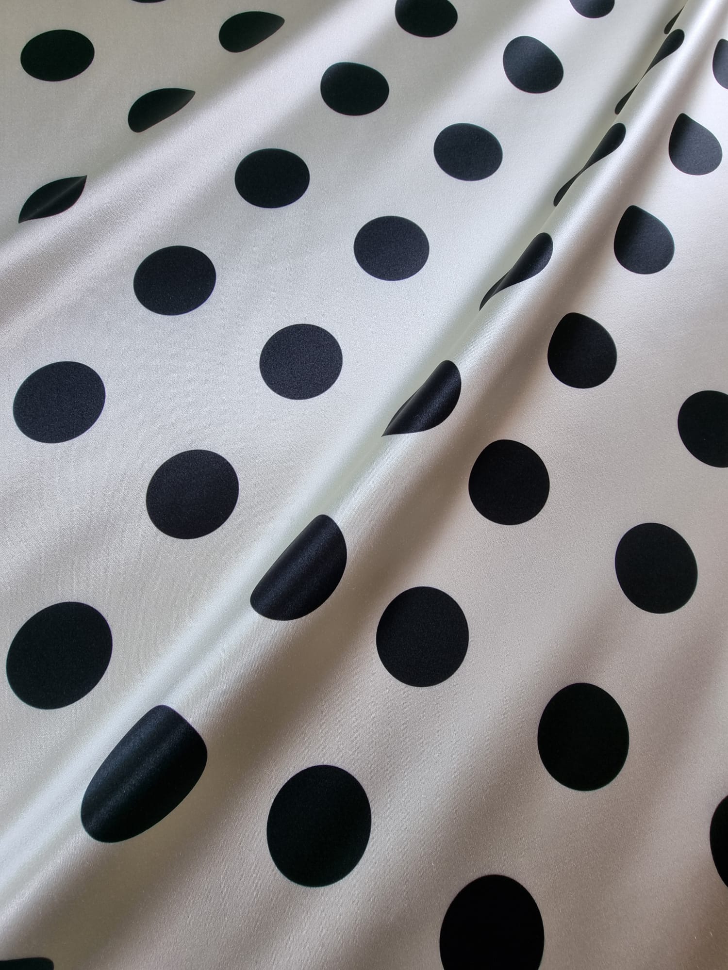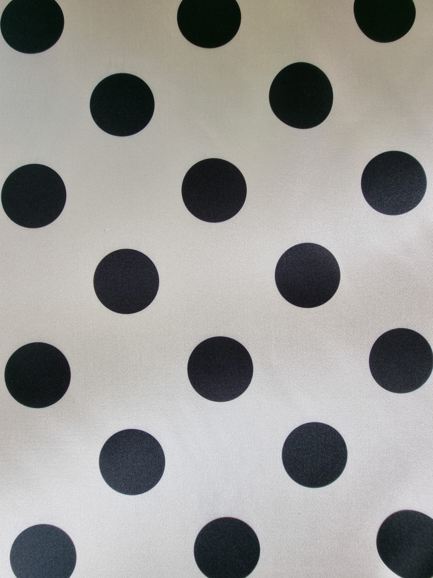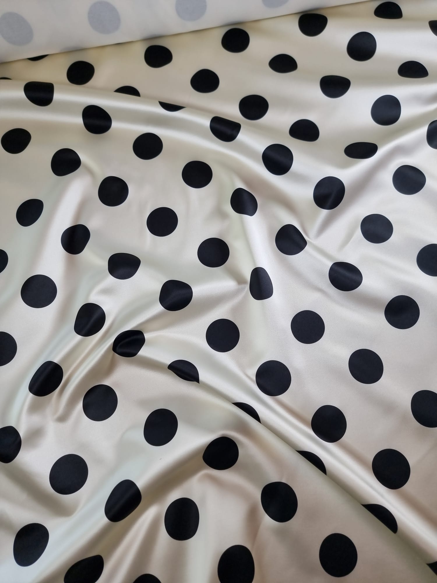Tesatura tip tafta duchesse din fibre naturale, design buline Negre pe fond Ivoire