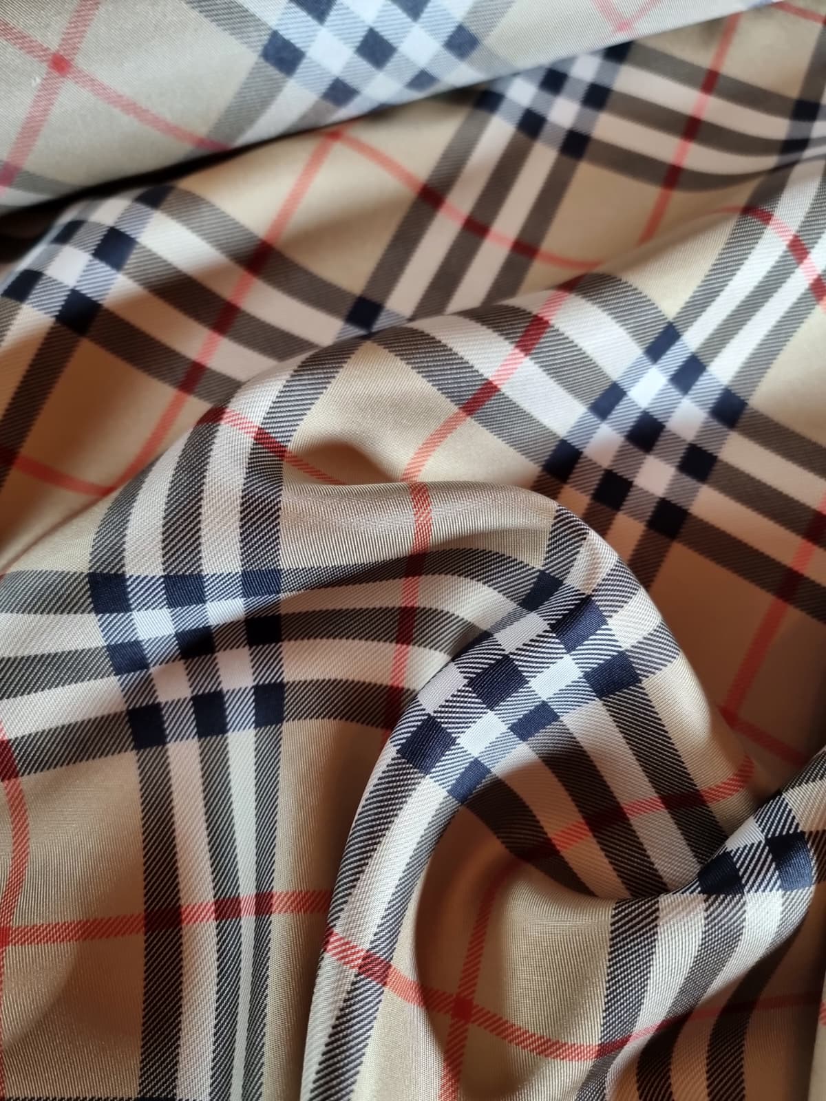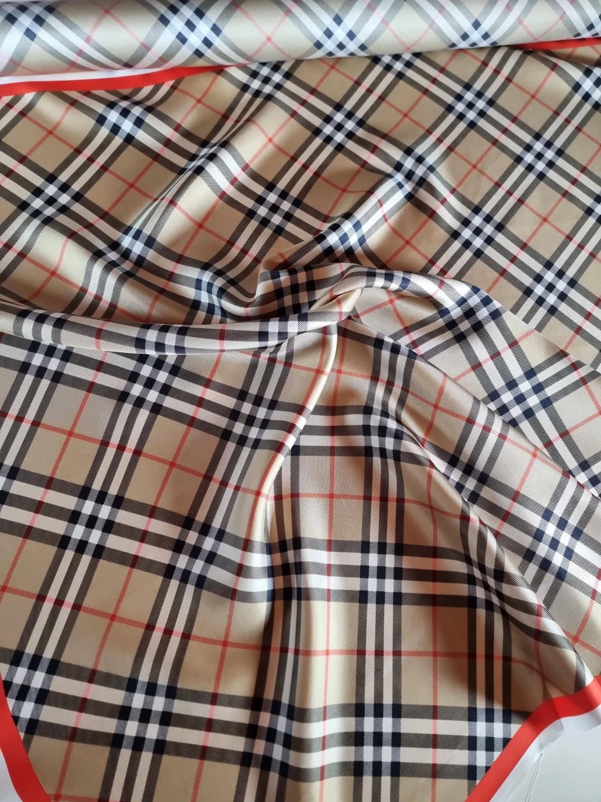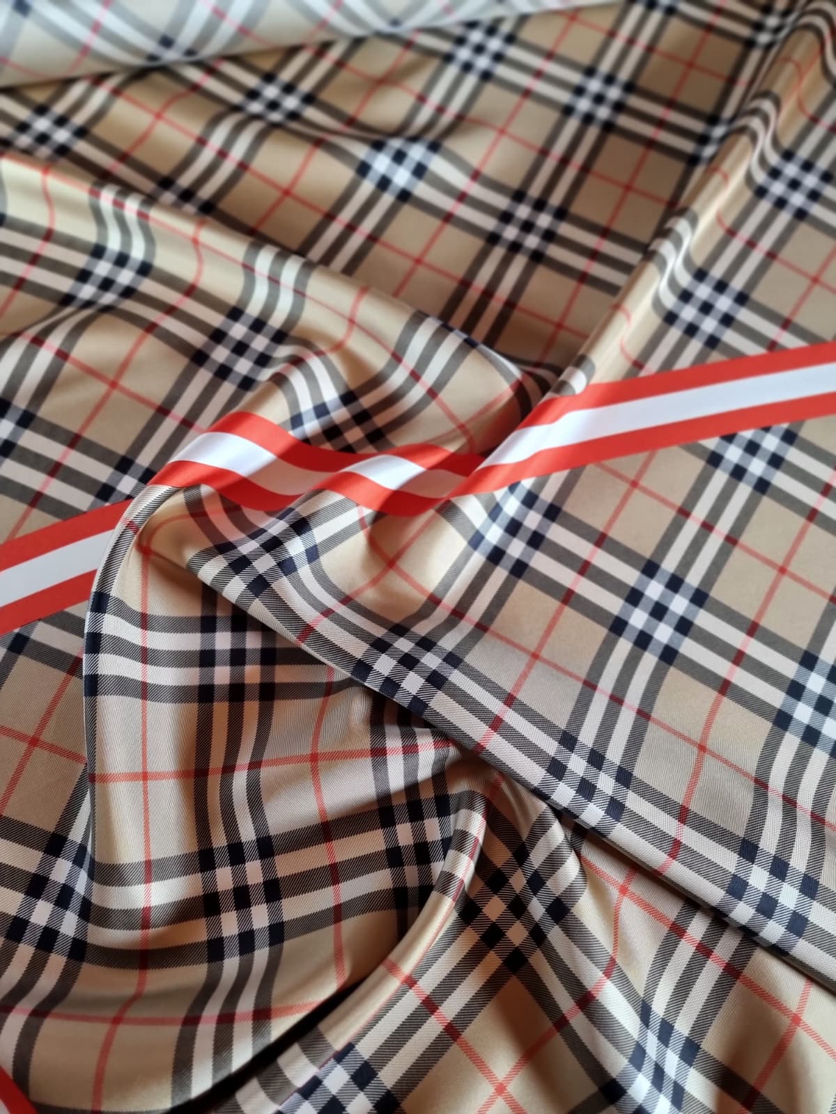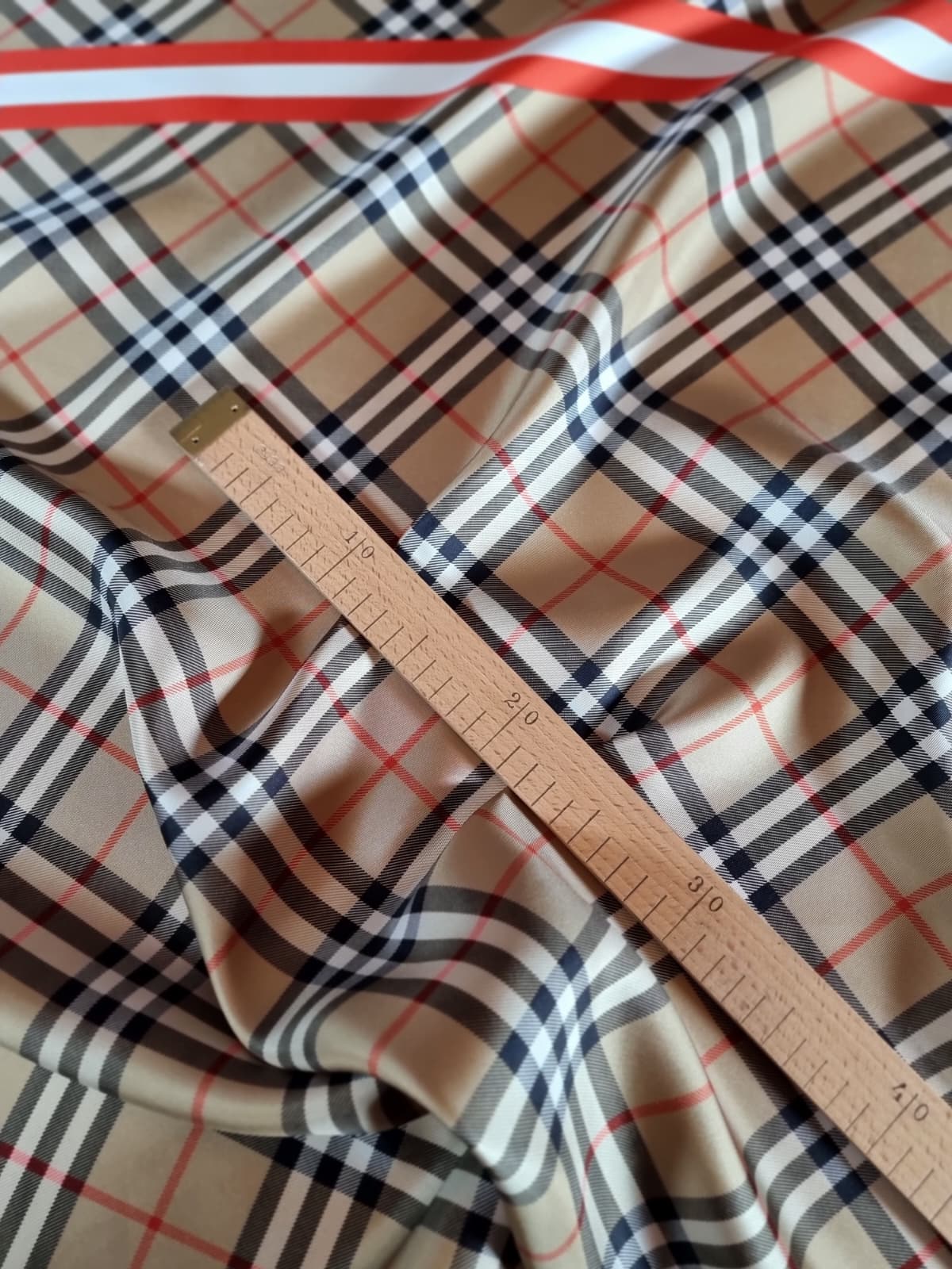 Tesatura twill din matase naturala – sub formă de panou cu design caroiat, Bej / Negru / Rosu