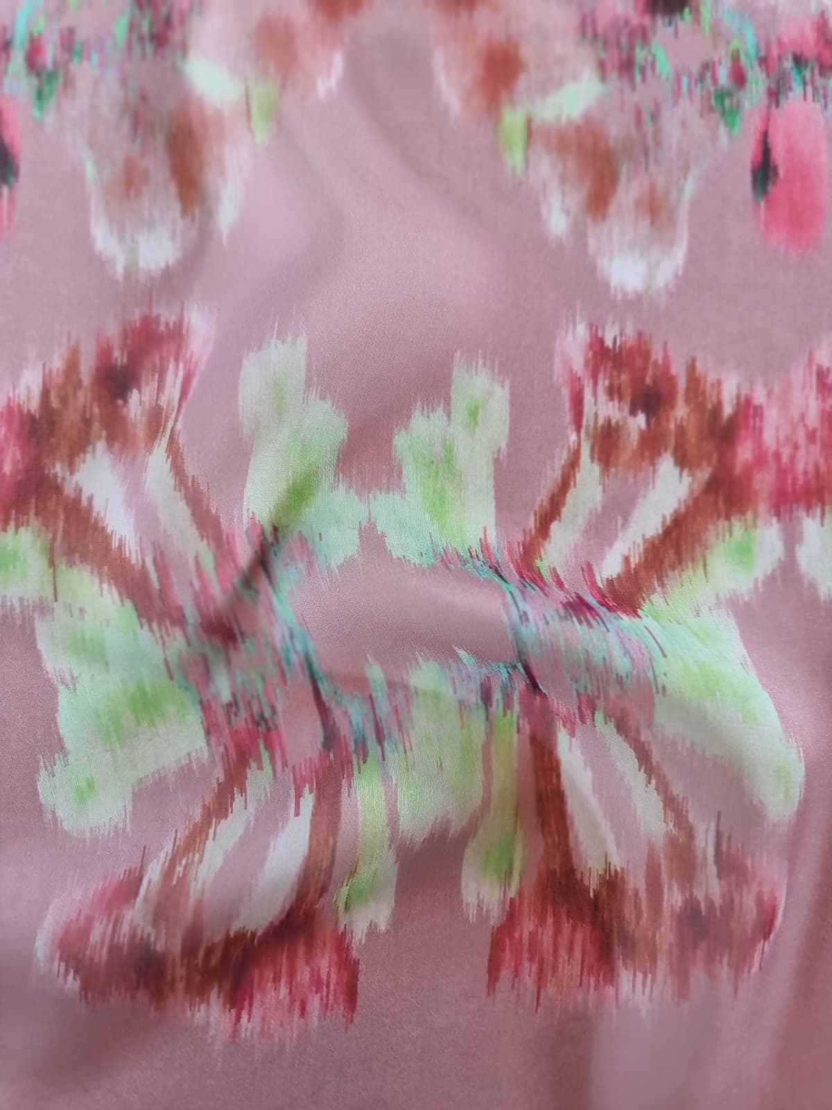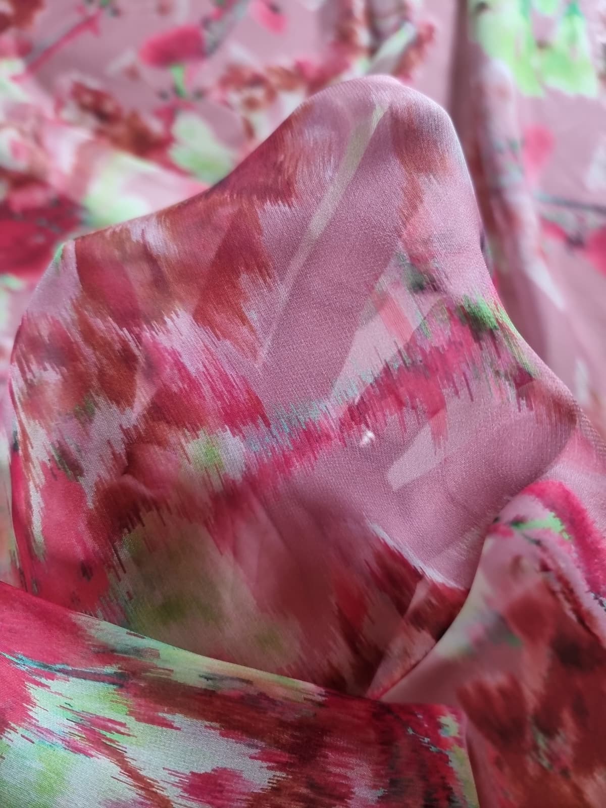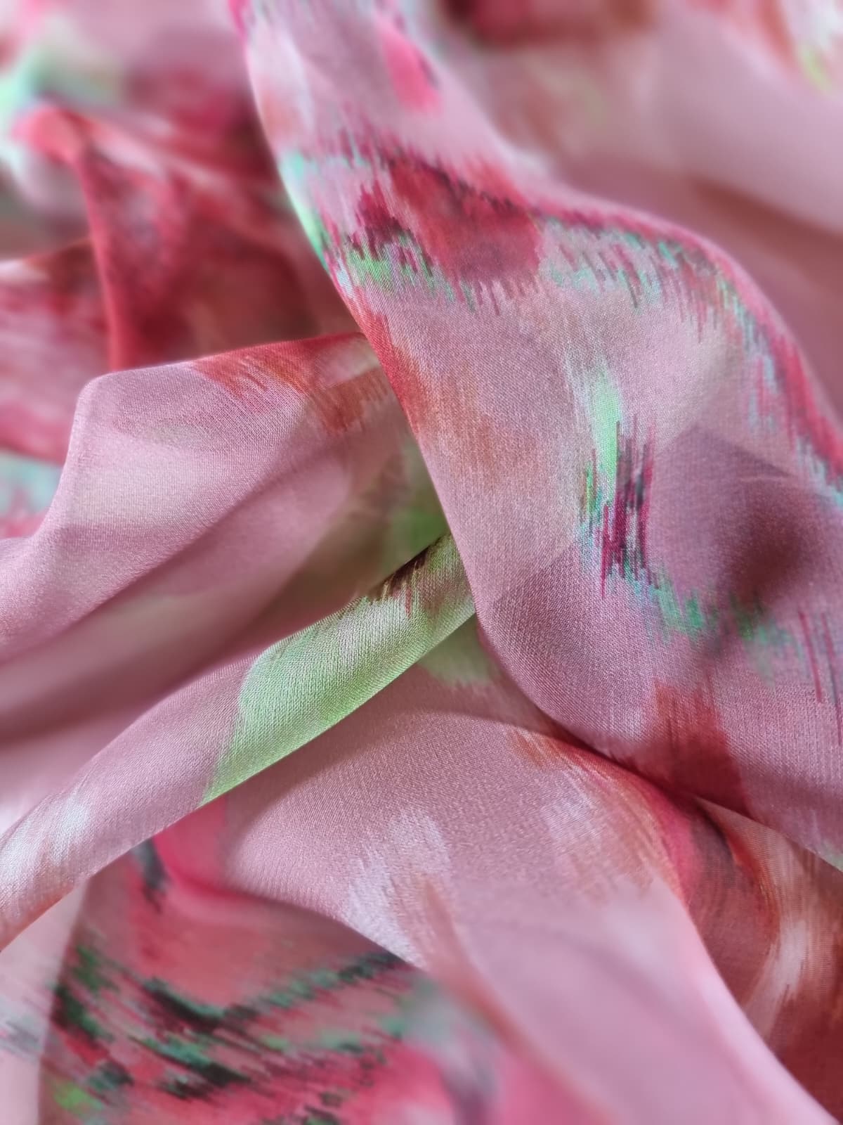 Voal din matase naturala cu imprimeu abstract Bordo – Verde pe fond Roz