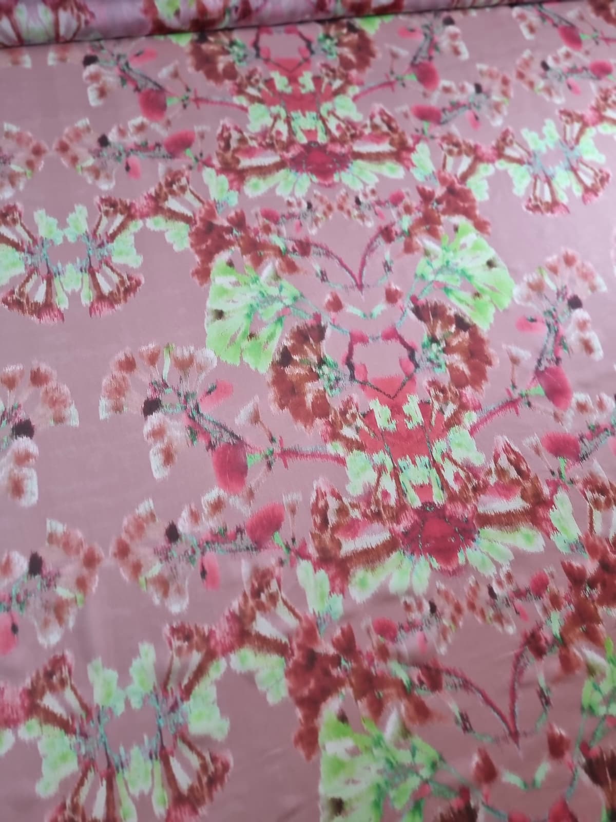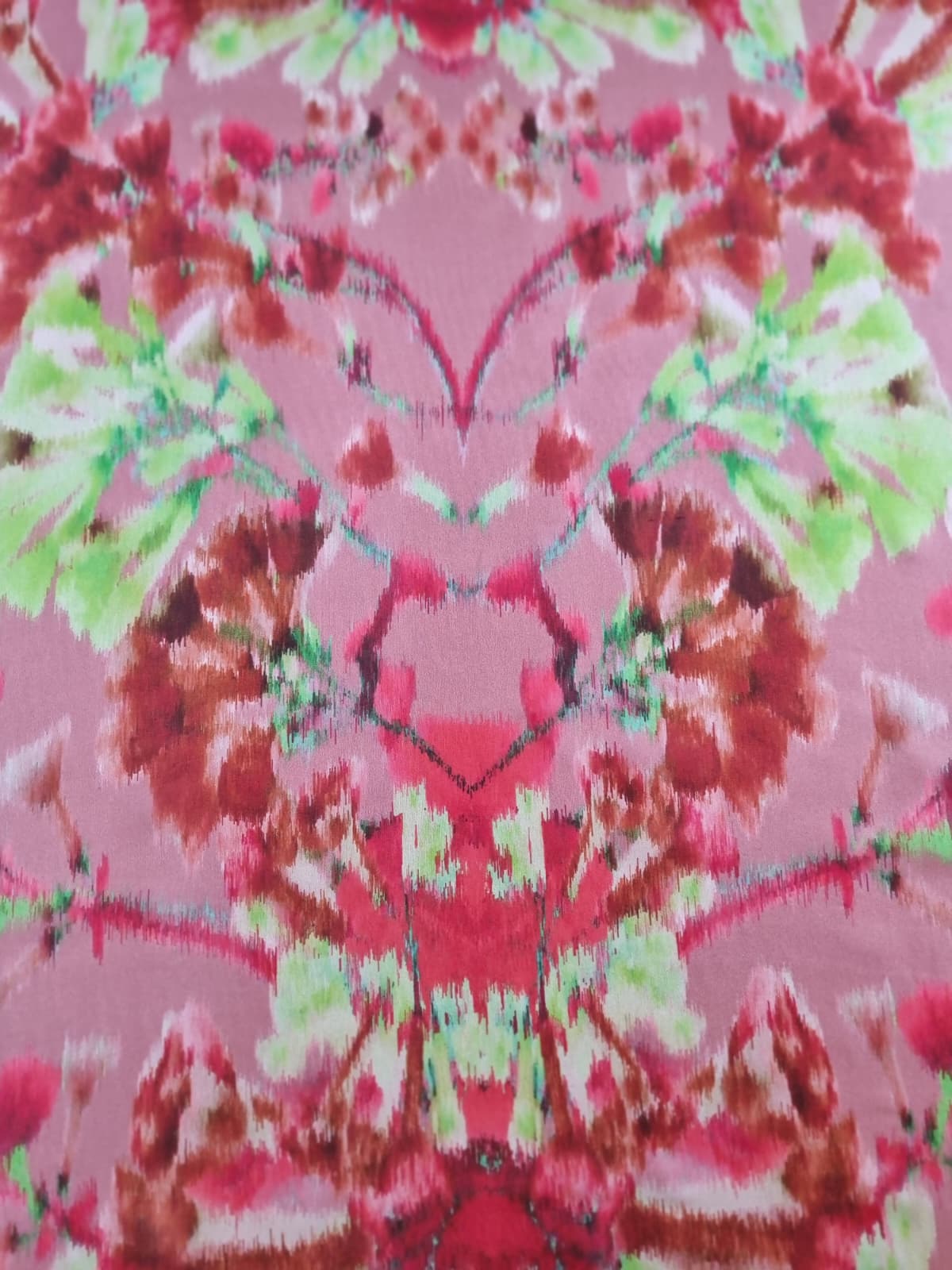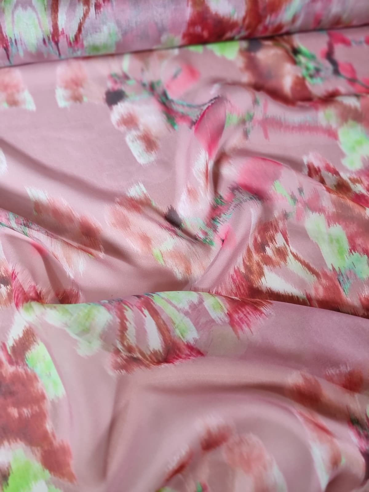 Voal din matase naturala cu imprimeu abstract Bordo – Verde pe fond Roz