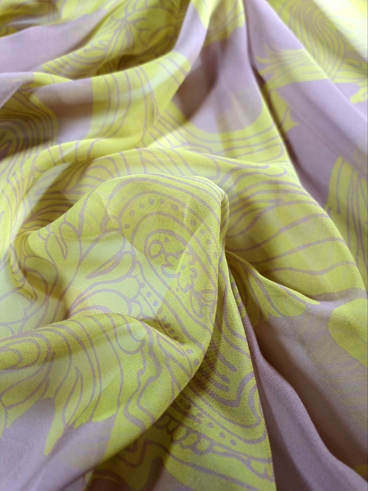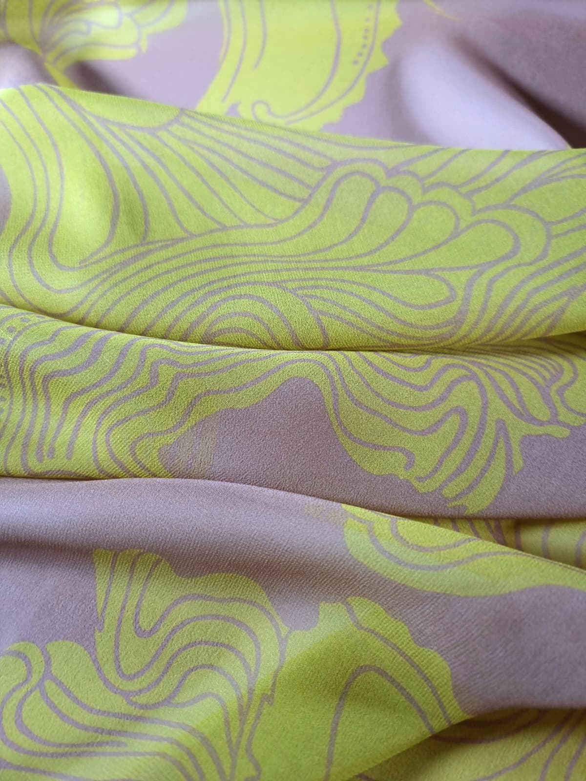 Voal din matase naturala – Imprimeu abstract, Bej nude / Verde deschis