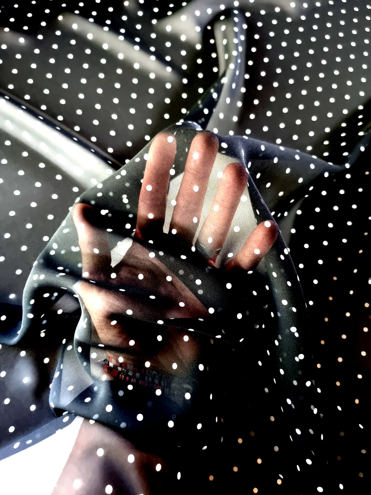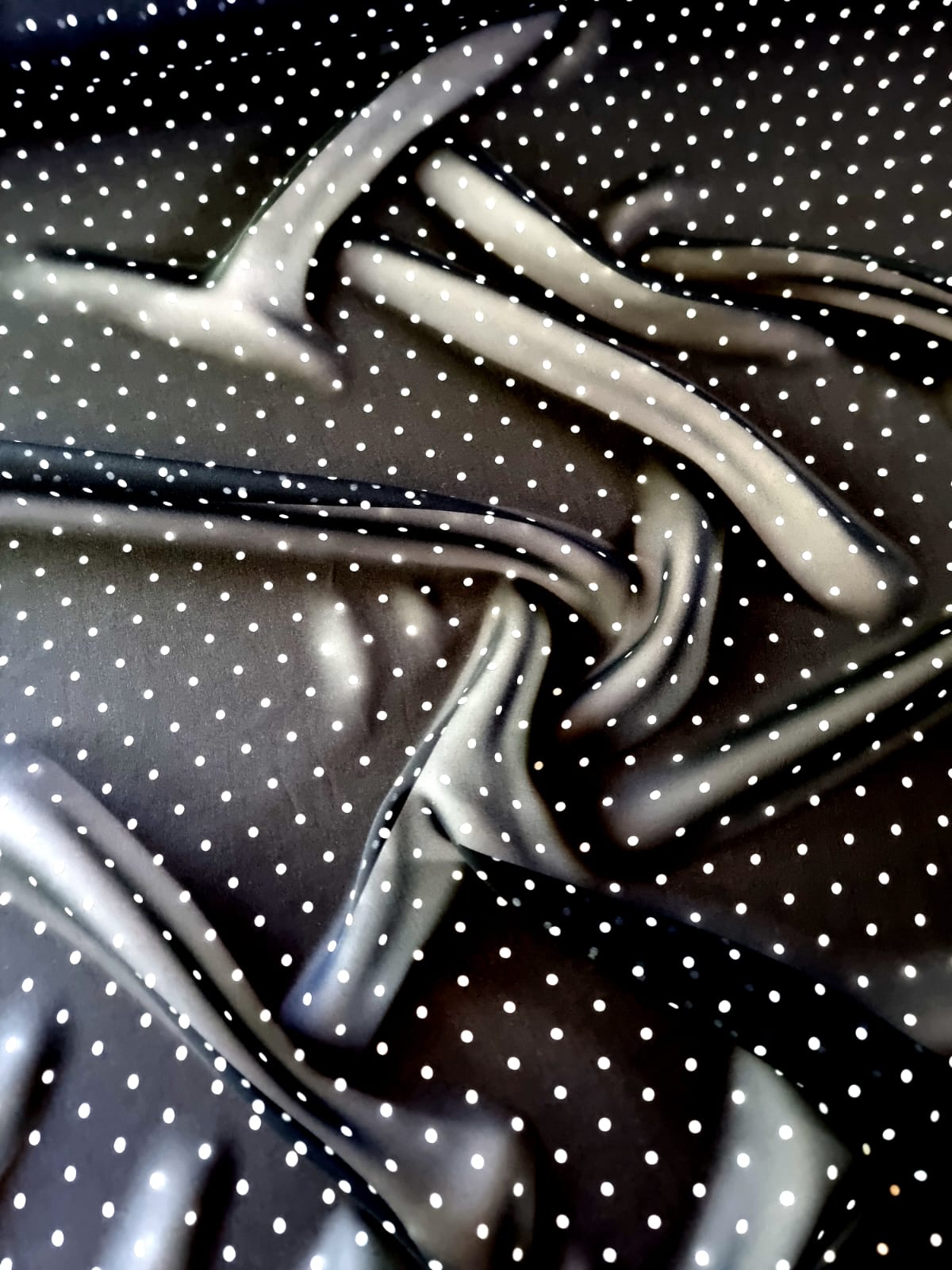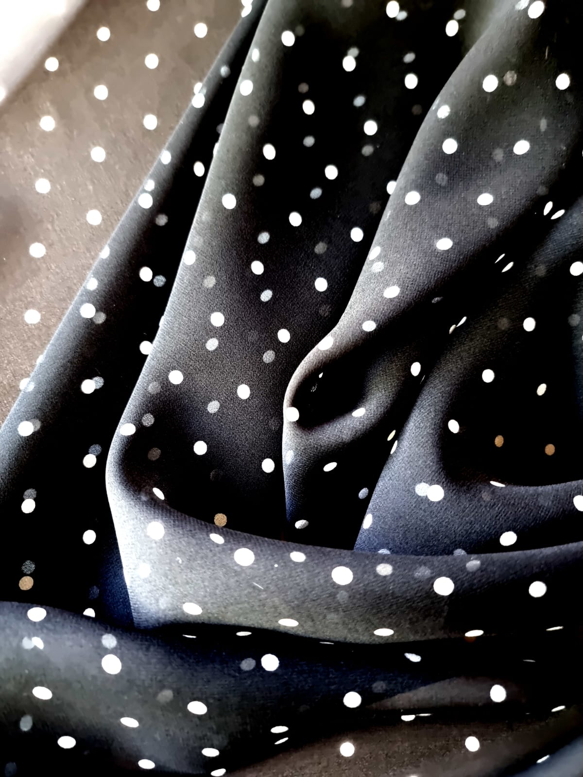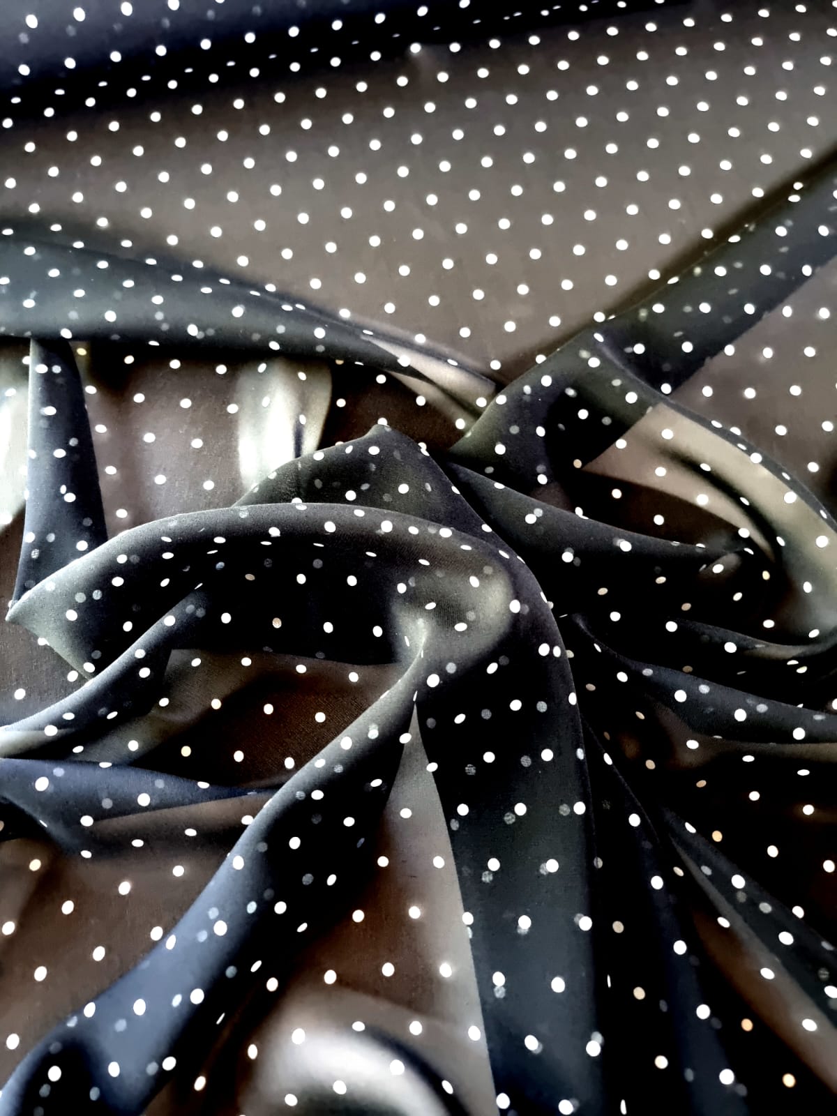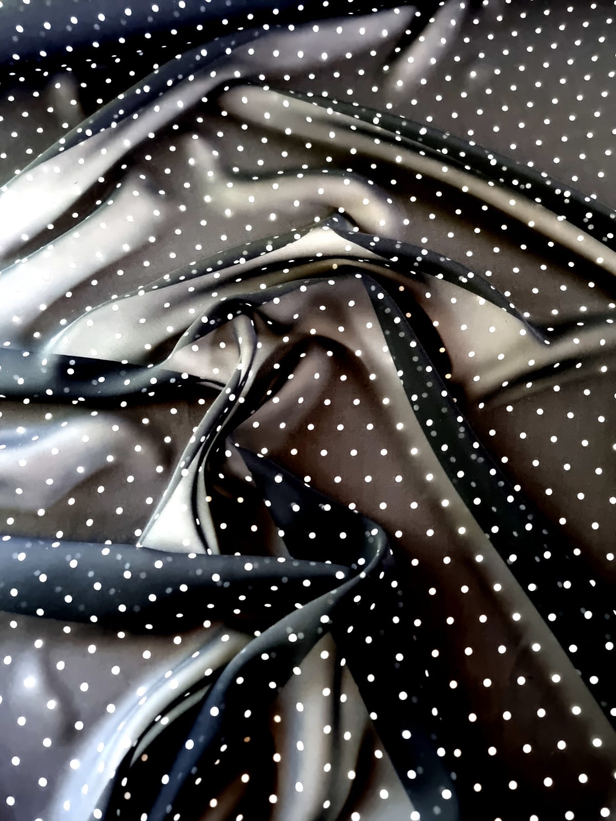 Voal Georgette din Matase Naturala – Buline albe pe fond negru