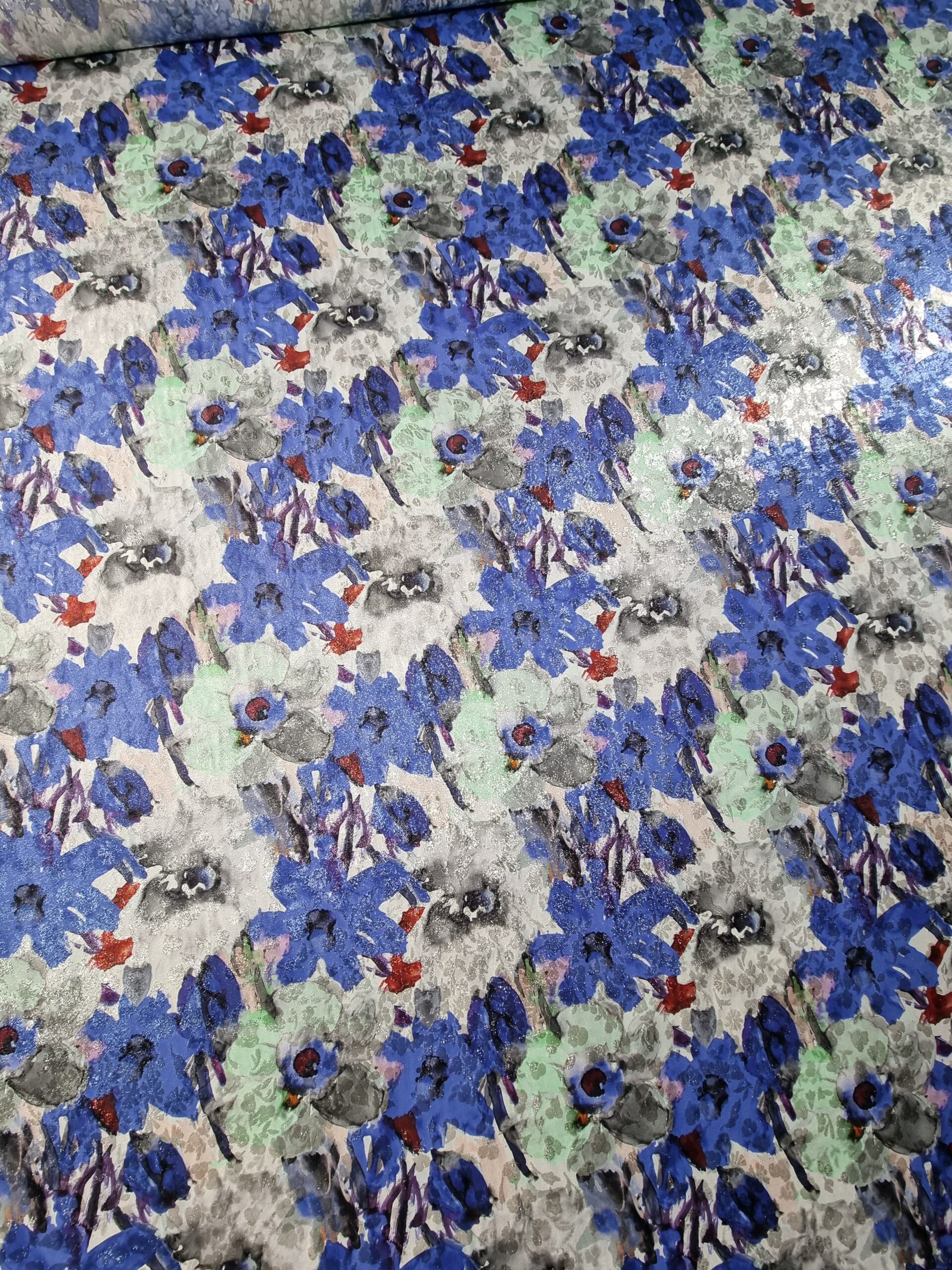 Tesatura crepe de chine din matase naturala cu elastan, design floral – Multicolor