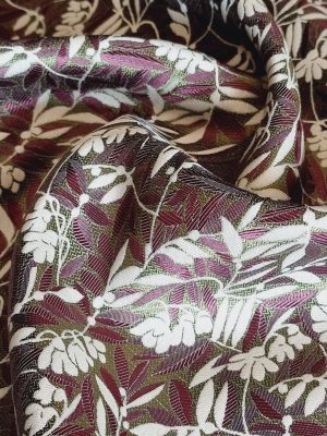 Tesatura jacquard din bumbac – motive florale, Negru/Alb/Rosu/Galben