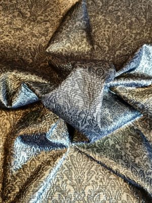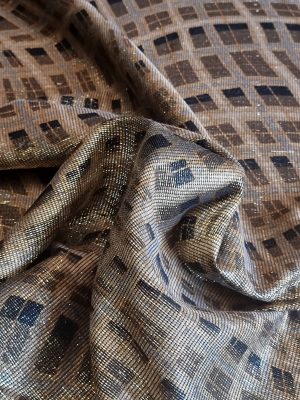 Tesatura jacquard din mătase naturala cu insertii lurex, Roscat/Albastru/Auriu
