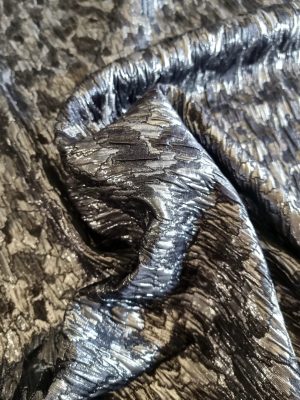 Voal creponat imprimat cu motive paisley, Bleu/Maro/Albastru